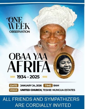 Family announces one-week observance for Mrs. Obaa Yaa Afrifa