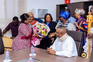 Lordina Mahama pays courtesy call on Ga Mantse after accident in Oti Region