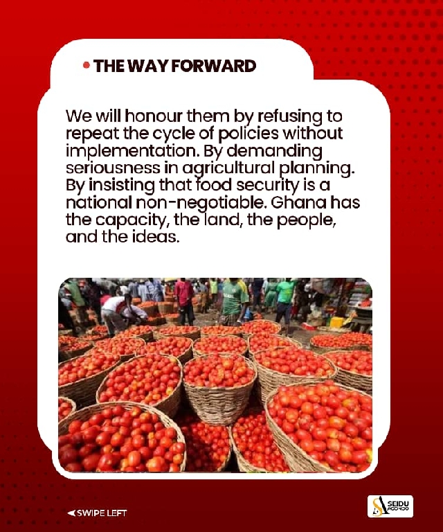 Today, despite PFJ’s massive expenditure, Ghana cannot produce tomatoes consistently year-round, resulting in our traders continuing the perilous journey to Burkina Faso, leading to the deadly ambush.