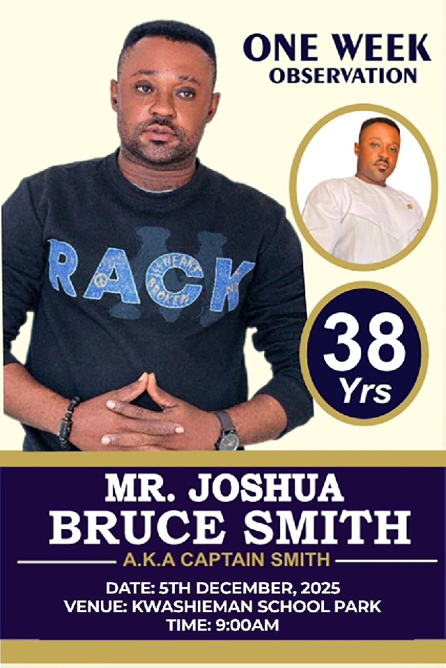 The ceremony is expected to bring together colleagues, friends, and loved ones to honour the memory of Joshua Bruce Smith, also known as Captain Smith, who was widely admired within the media fraternity for his professionalism, warmth, and dedication to duty. He passed away after a short illness in Accra last month.