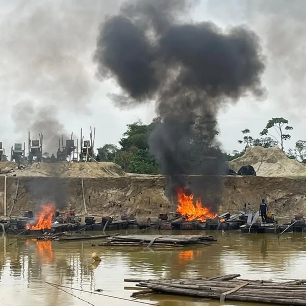 According to officials, the operation resulted in the burning of one hundred (100) changfang machines and fifty (50) blankets believed to have been used by illegal miners at the site.