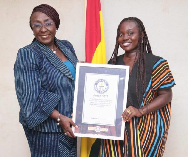 Minister Gomashie (MP) spoke when she welcome Juliana Gharbin to the ministry, as the artist came to formally present her GWR certificate to government.