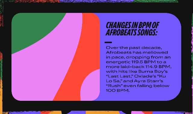 * Sound evolution: Introspective, emotionally charged vocals now account for 38% of global Afrobeats streams.