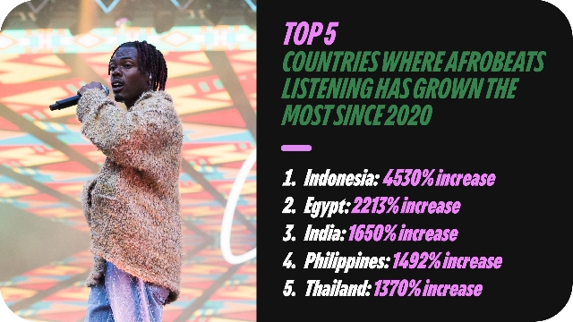 * Latin expansion: Afrobeats listenership in Latin America grew more than 180% year over year, with Brazil up 500% since 2020.