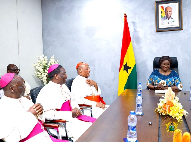 Vice President Jane Naana Opoku-Agyemang has held a high-level meeting with a delegation of Catholic Bishops led by His Eminence Cardinal Wilfred Napier, the Special Envoy of Pope Leo XIV, who is in Ghana as part of activities marking the 75th Jubilee Celebration of the establishment of the hierarchy of the Catholic Church in Ghana.