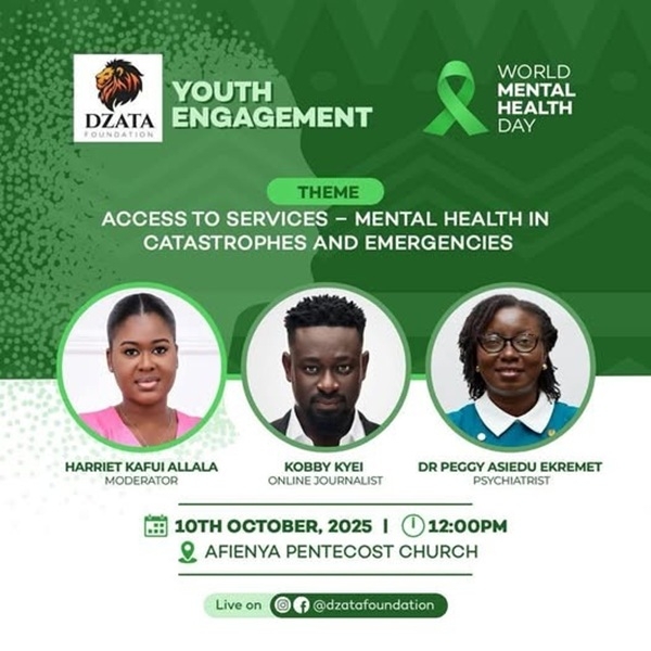 In commemoration of World Mental Health Day 2025, the Dzata Foundation will organise a live social media youth engagement event from Afienya in the Greater Accra Region with the aim of promoting open conversations on mental health and improving access to mental health services across Ghana.
