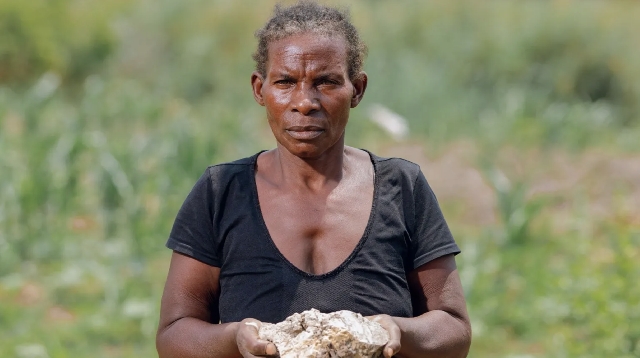 | Ali Ngwane/BBC (Pic): Farmer Abigail Namtowe says growing food is now a struggle