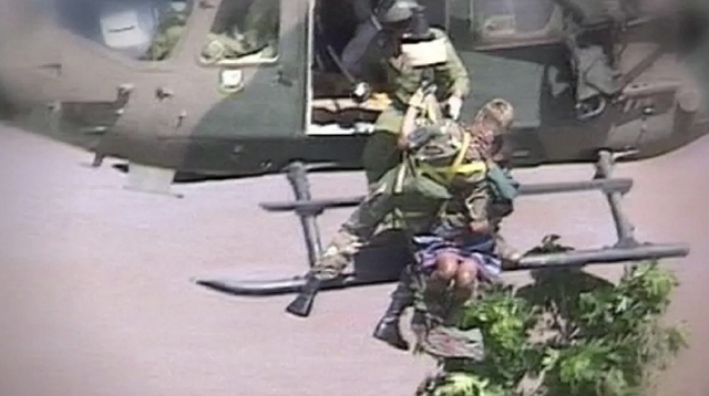 The sight of the newborn and her mother being winched to safety by helicopter amid the deluged landscape became a defining image of the floods of 2000 – Mozambique's worst ever.