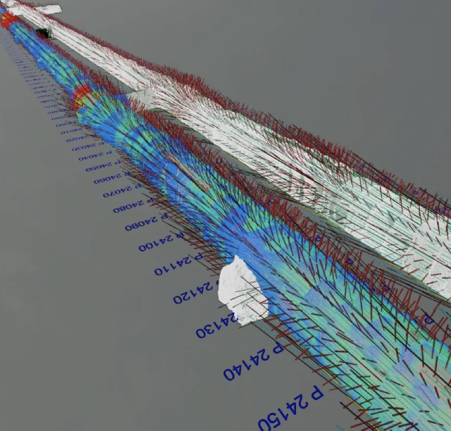 | Skanska (Pic): Measurement While Drilling" data is used to analyze and visualize the geological conditions along the tunnel