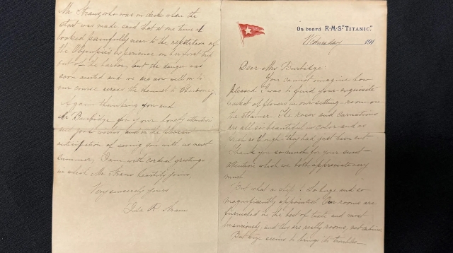 The letter is postmarked "TransAtlantic 7" meaning it was franked on board in the Titanic's post office before being taken off with other mail at Queenstown, Ireland.