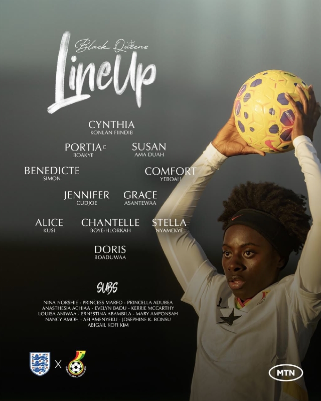 | Coach Kim Lars Björkegren's Black Queens lineup that faced the Lionesses of England
