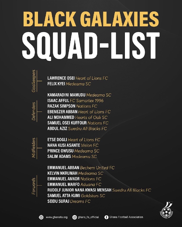 Kassim Mingle names 20-man Black Galaxies squad for Dec 16 South Africa friendly